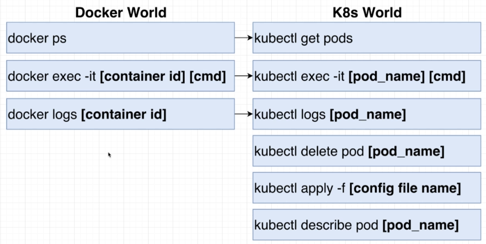 - Use all the same debugging techniques we learned with Docker CLI even though many of these commands are available through kubectl