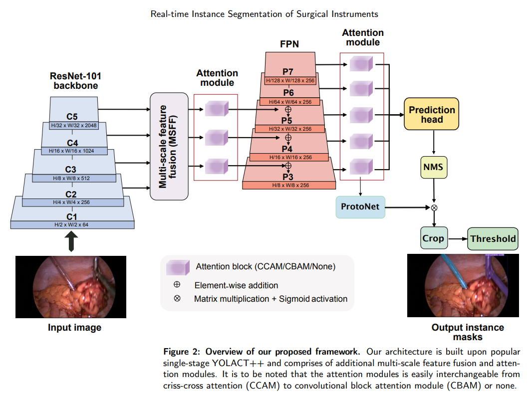 ToothNet Real-time Instance Segmentation of Surgical Instruments using Attention and Multi-scale Feature Fusion: YOLACT++, 1-stage, FPN, Attention