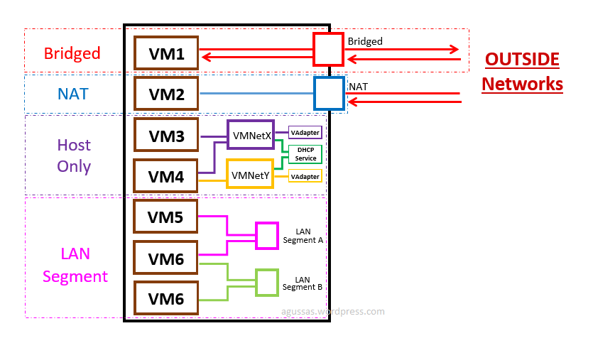 Bridged, Network Address Translation (NAT), Host-only in Virtual Machine